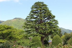 从喷泉爬上楼梯,我看到一棵巨大的雪松。其高度令人叹为观止。