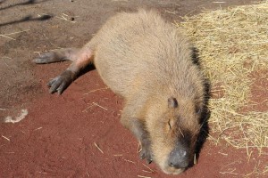 “动物互动广场”是该动物园里我最喜欢的场所。我在这里尽情地抚摸了兔子、长耳豚鼠、豚鼠、水豚。动物们基本上没有什么反应,看来已经很习惯人类了。