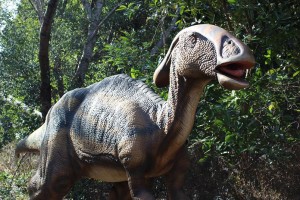 游戏区有恐龙栖息的森林。这里需要另交500日元。顺着道路前行,有9座恐龙塑料模型,这些都是人们熟知的恐龙。这些模型不是原始恐龙的大小。